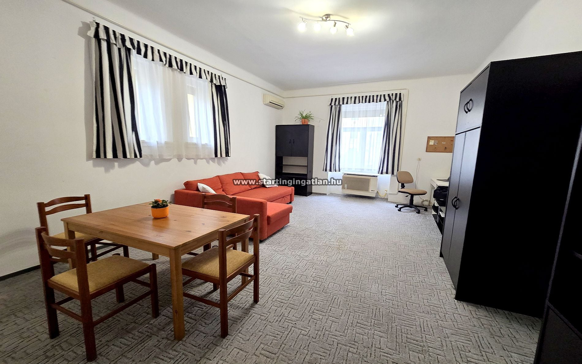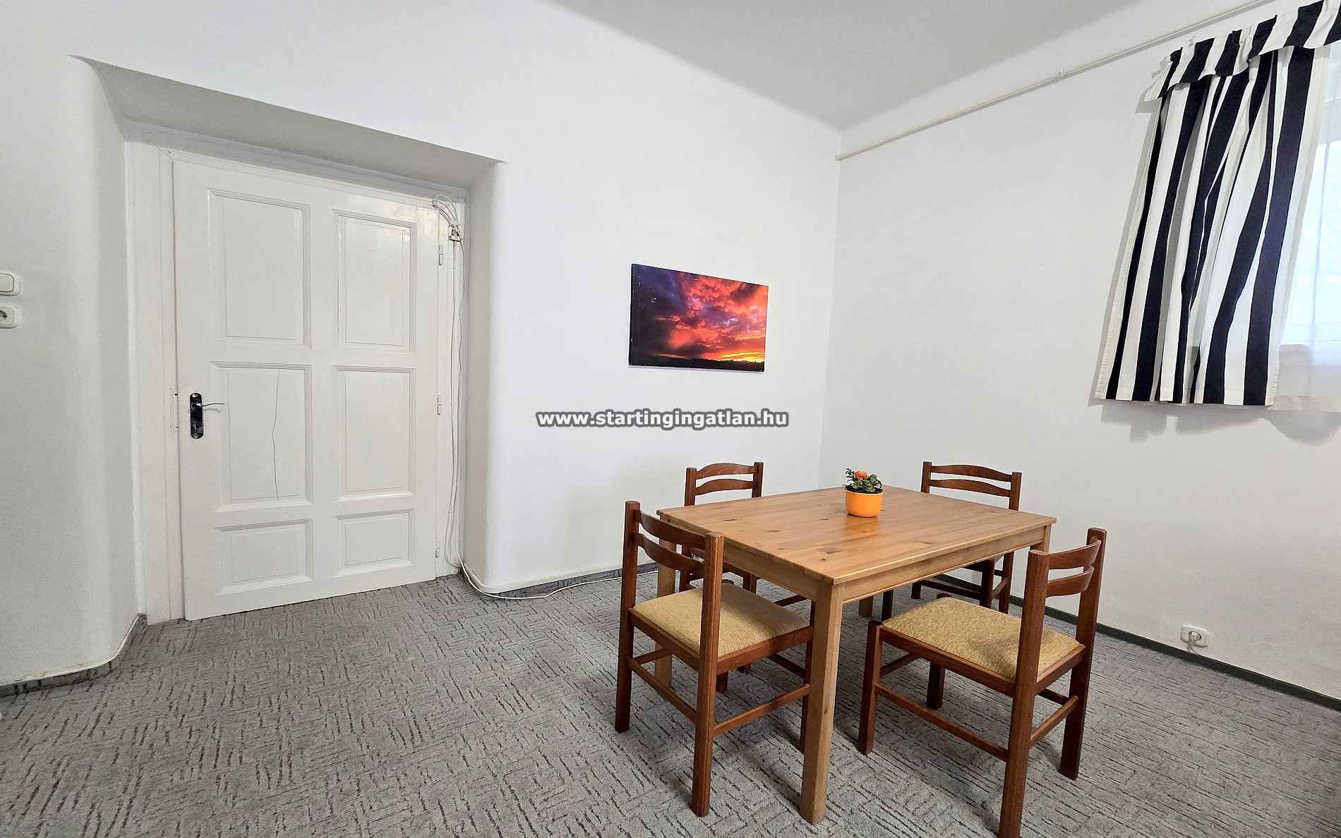 Az ingatlan egy rendezett társasház folyosójáról közelíthető meg, elhelyezkedésének köszönhetően pedig egyszerre élvezhető a belső kert nyugalma és az utcai tájolásból adódó világosság. A lakás jól átgondolt elosztású: a nappali és a külön nyíló félszoba kényelmesen elkülönül, így praktikus és élhető tereket biztosít a mindennapokhoz.